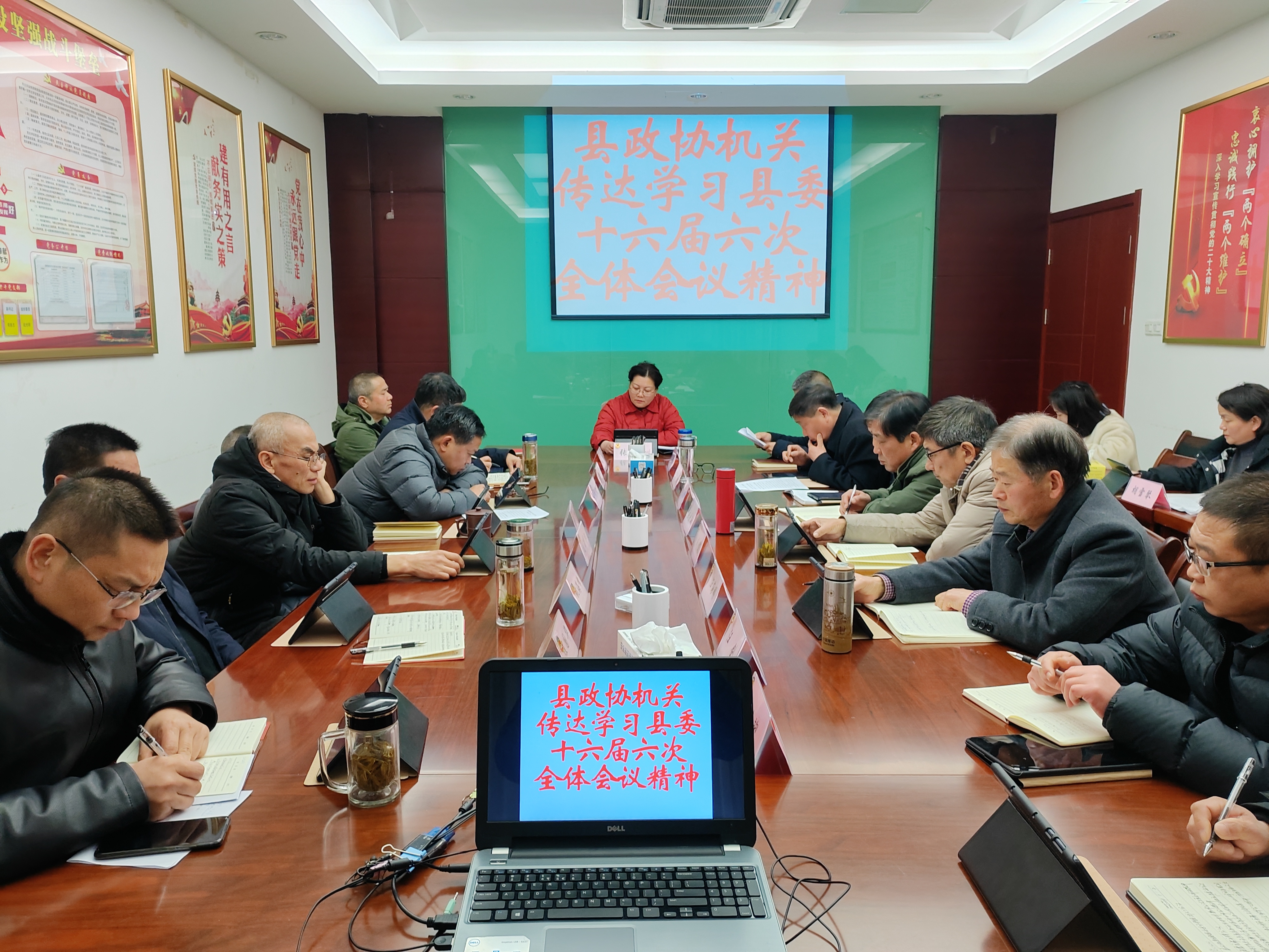 1月2日下午,县政协机关召开全体干部大会,传达学习县委十六届六次全会精神,研究县政协贯彻落实意见。