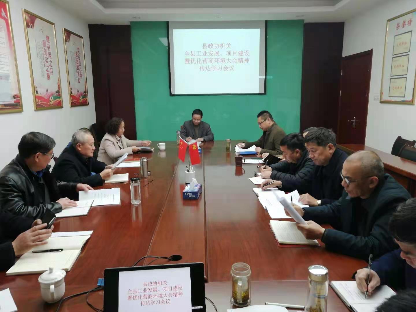2月23日,县政协机关召开全体会议,传达学习全县工业发展、项目建设暨优化营商环境大会精神,并就贯彻落实提出具体要求。机关全体人员参加了会议。