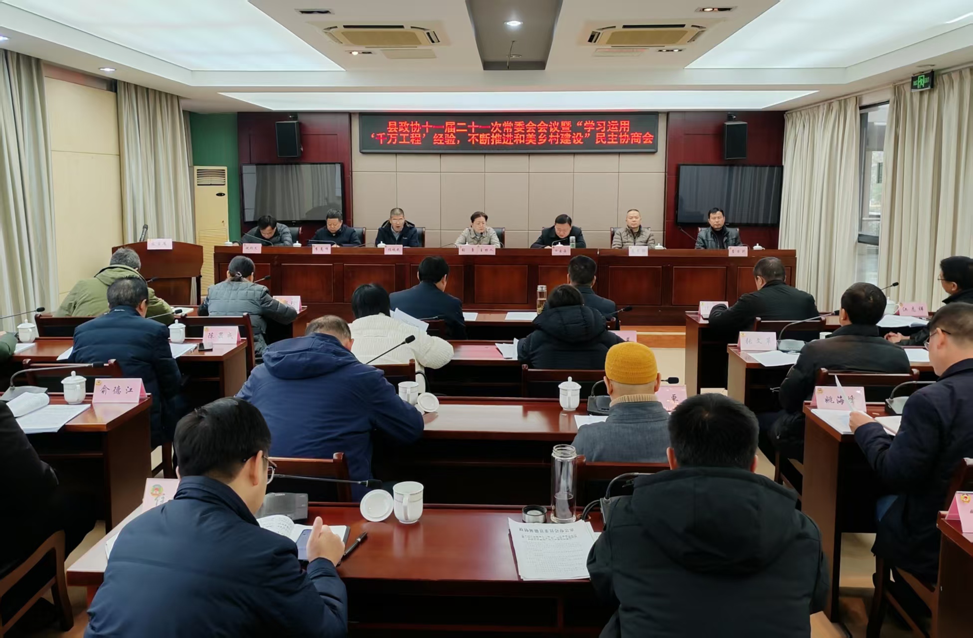 2025年12月25日上午,县政协十一届二十一次常委会会议暨“学习运用‘千万工程’经验,不断推进和美乡村建设”民主协商会召开。县政协主席张蕾主持会议并讲话。县政府副县长周云海应邀出席会议。县政协副主席程观武、高冬祥、李高峰、查日升,秘书长倪彩文及县政协常委出席会议,不是县政协常委的政协机关各委办主任、副主任,部分镇(经开区)政协工作召集人,部分政协委员,县农业农村局、县住建局、旌阳镇负责人列席会议。